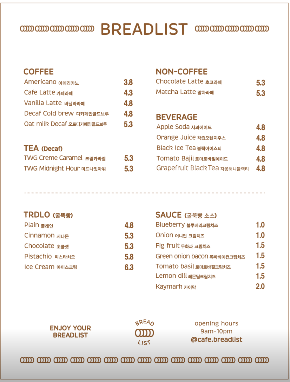 저렴하고 예쁘고 굴뚝빵도 맛있는 브레드리스트